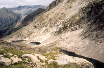 Un chapelet de lacs en enfilade garnit le fond de cette vallée qui possède un caractère aride.