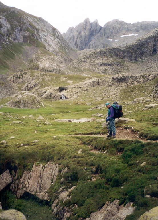 C'est dans ces parages qu'a lieu la rencontre avec trois jeunes Majorquins, 2 gars et une fille. Ils parcourent à l'envers cette étape de HRP. Moitié en français, moitié en espagnol, ils donnent des indications sur la voie à suivre pour trouver le col. Leurs explications détaillées vont se révéler inutiles, à cause de la surabondance de cairns. On dit parfois que "trop d'abondance nuit".