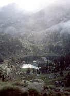 | La marche du jour commence par la traversée du barrage. Ce matin, les eaux coulent abondamment sur le déversoir du trop-plein. Petite montée jusqu'au Collet Cloto (2160 m). Une brume vagabonde cache par moments la vision du paysage, mais chacun sait qu'une brume matinale n'empêche pas le beau temps dans la journée. Donc l'optimisme reste de rigueur.