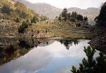 | Descendre au lac, longer sa rive, monter un peu, descendre encore jusqu'à une terrasse empierrée où l'on trouve les vestiges d'une ancienne exploitation de mine : galerie, rails rouillés, etc.