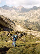 On gagne ensuite l'axe d'un vallon herbeux, que l'on remonte comme on peut, car il est raide, et les sentes difficiles à trouver.