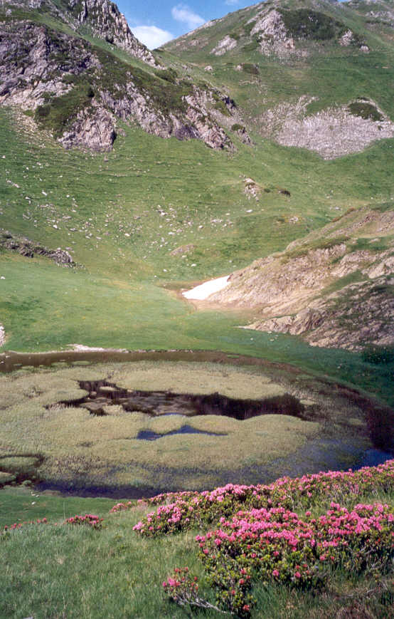 Dès la première heure, ils sont dans l'ambiance de la montagne au début de l'été. Les massifs de rhododendrons parsèment des tâches rosées sur les pentes verdoyantes, tandis que les névés encore nombreux sont les vestiges des rigueurs hivernales.