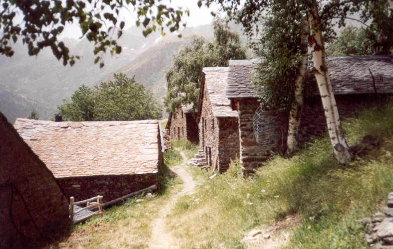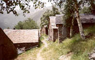 À un quart d'heure environ du parking le plus proche, au milieu des prairies non encore fauchées, une dizaine de maisons restaurées sont blotties le long de deux "rues" qui sont de simples sentiers. |