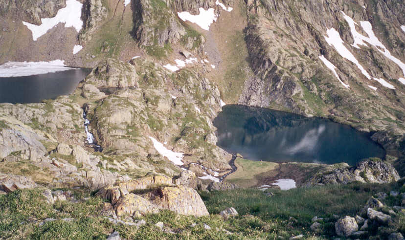 Une vingtaine de minutes suffisent pour monter au Col de Calberante (2610m). Une fois encore, c'est la découverte d'un magnifique spectacle de lacs d'altitude, nombreux et encore en partie gelés.
