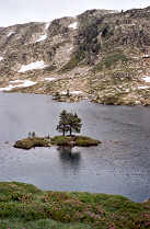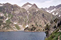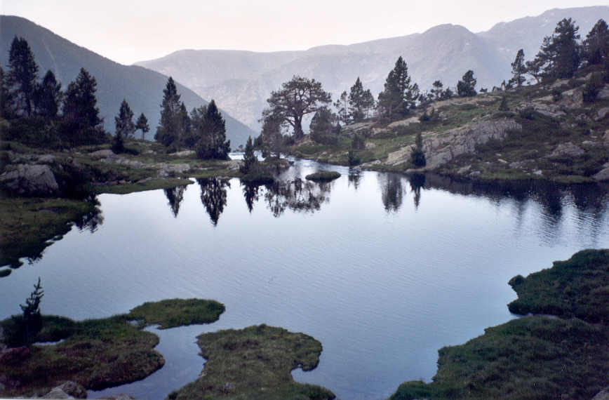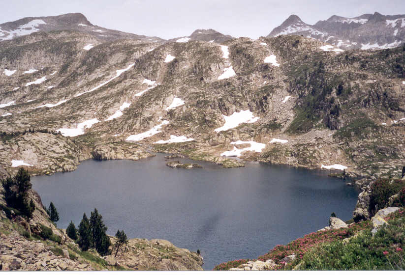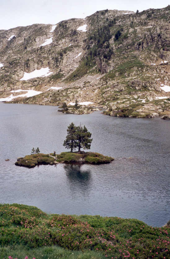 | Ensuite, c'est l'Estany Romedo de Baix, très grand lui aussi, avec un îlot boisé qui rajoute à son attrait. |