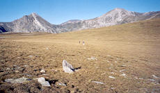 | La suite du parcours est des plus surprenantes. Le Pla de Coma Armada est un plateau herbeux à 2400 mètres d'altitude. Pas de relief, très peu de rochers. De loin en loin, des pierres levées indiquent la direction à suivre. Attention, danger en cas de brouillard !