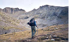 | Au sortir de la forêt, sous les premiers rayons de soleil, il est bien agréable de faire une pause sur le seuil du refuge Arago (2123 m), et de regarder monter les autres. Cela rappelle un voyage en Crète où, du matin jusqu'au soir, on voyait les vieillards assis sur le pas de la porte, regardant les passants…