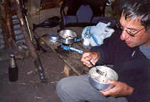 | L'eau la plus proche est à 300 mètres, au torrent. À défaut d'huile, d'ail et de persil, c'est dans cette eau que va mijoter la belle récolte de cèpes. Malgré l'extrême simplicité de la recette culinaire, soyez persuadé que les trois gourmets se sont régalés.