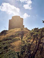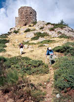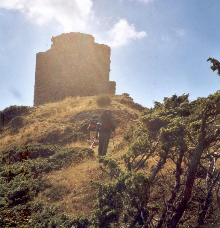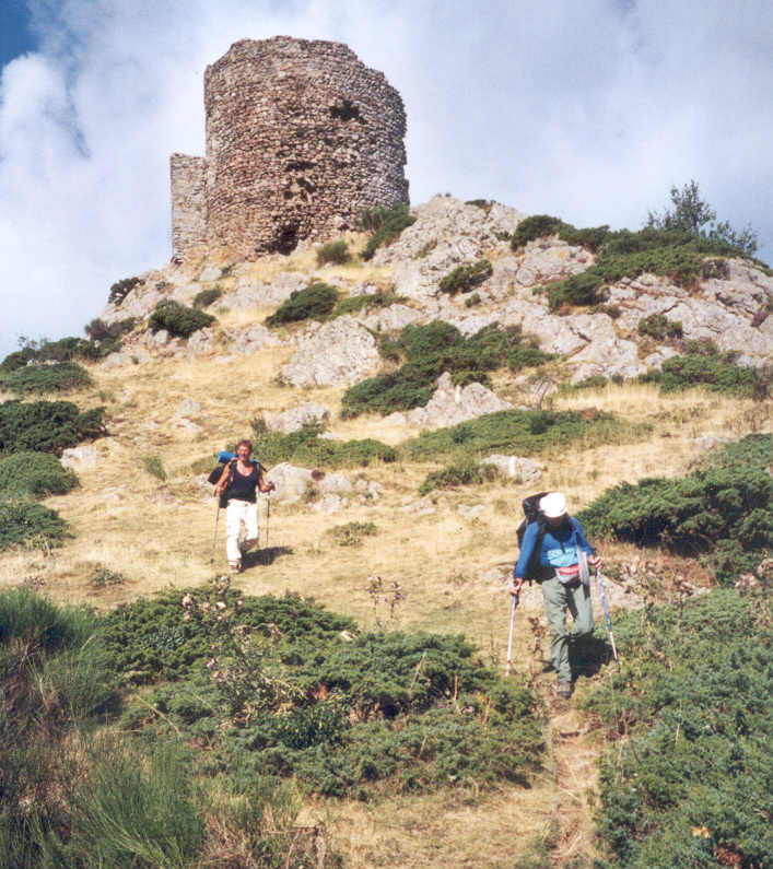 | Trois quarts d'heure après la pause café, les trois gaillards arrivent à la Tour de Batère, magnifiquement perchée sur une crête. |