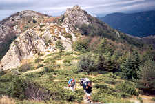 En foulant un épais tapis de feuilles mortes, descente directe sous la hêtraie jusqu'au Col du Puits de la Neige (1250 m), où l'on fait connaissance avec deux Français autochtones, montés jusqu'ici en voiture par la piste, afin d'aller se régaler en Espagne, au refuge des Salines. "On y mange très bien, et puis, c'est tellement sympathique", disent-ils.