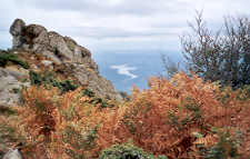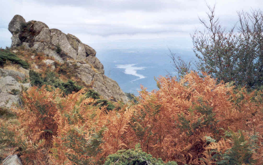 L'immense panorama qui devrait s'ouvrir sur les plaines de Catalogne est embrumé et pâlichon. Seules les bruyères, déjà grillées, donnent un peu de couleur au paysage immédiat.