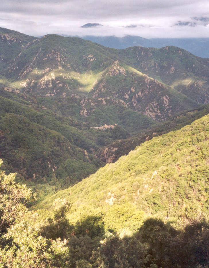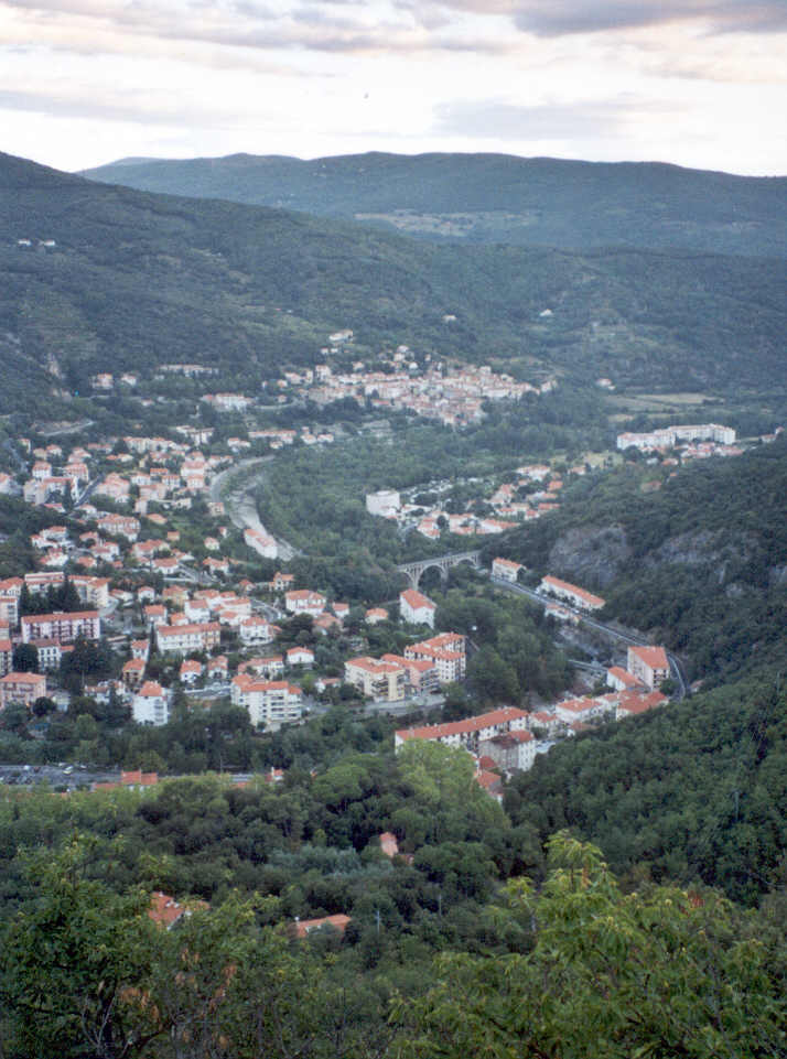 En fin de nuit, il a plu. D'un pas régulier et soutenu, les deux amis grimpent sans grand effort, des heures durant. Une échancrure dans le couvert végétal leur permet d'observer l'ensemble de la ville d'Amélie-les-Bains.