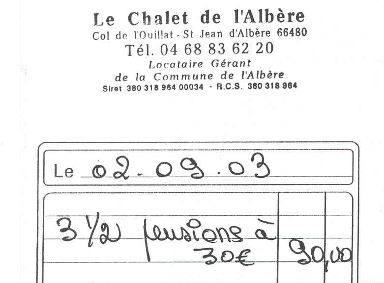Vers le milieu de l'après-midi, sous un ciel couvert et un air frisquet, les deux marcheurs atteignent le col de l'Ouillat, et le gîte d'étape "Le Chalet de l'Albère". L'accueil y est excellent, la chère aussi.